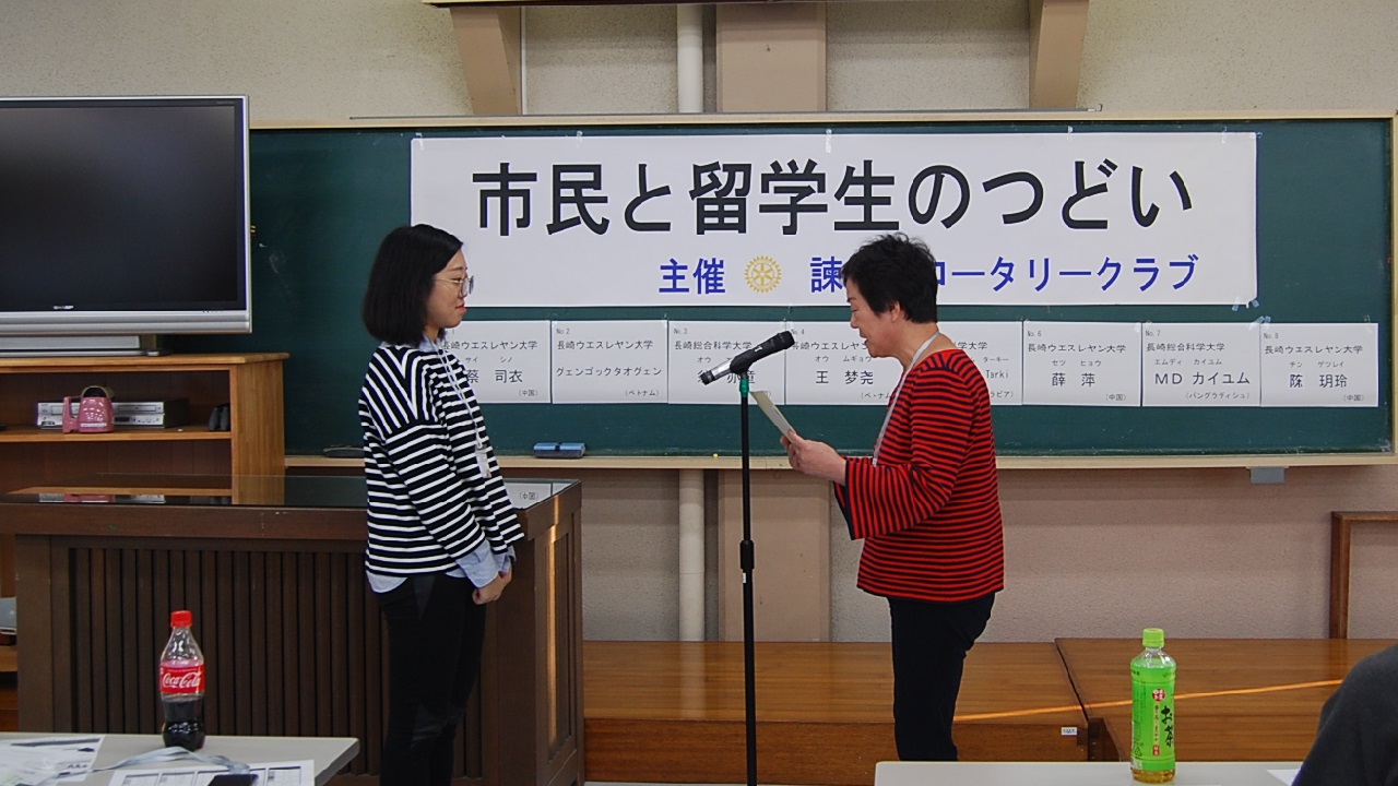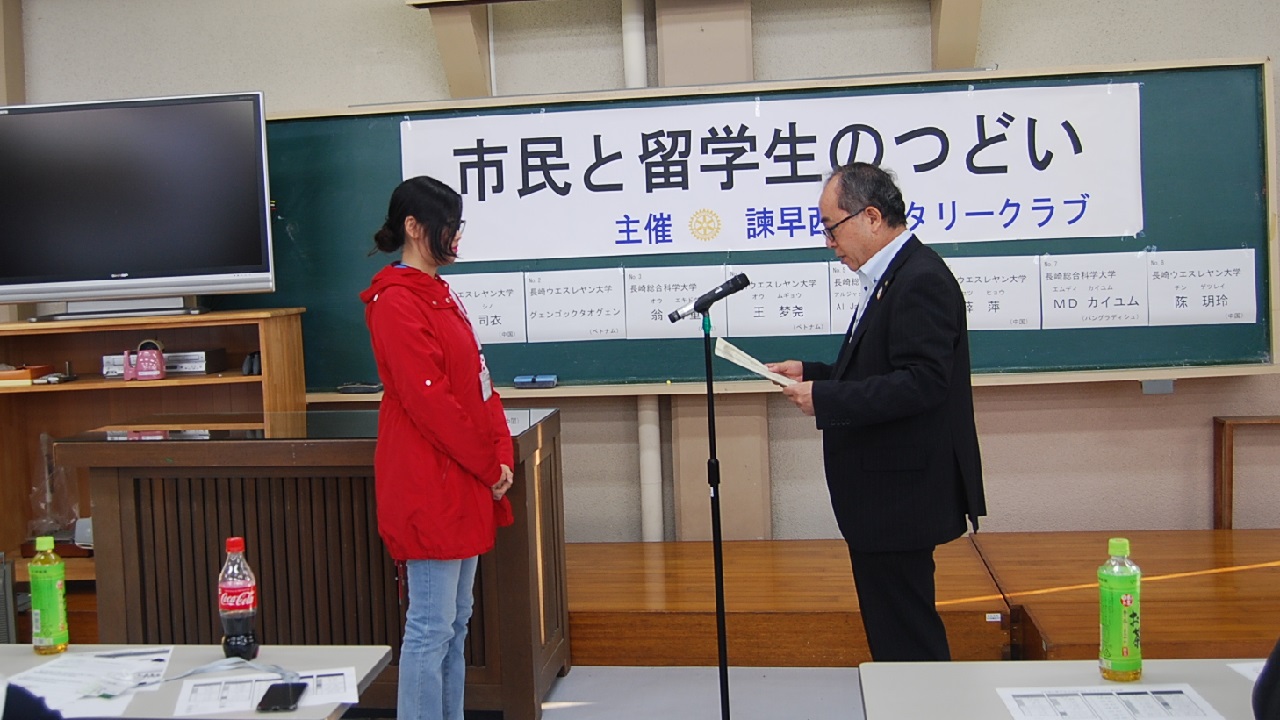 ロータリークラブ会長賞 グェンゴックタオグェンさん(ベトナム)長崎ウエスレヤン大学