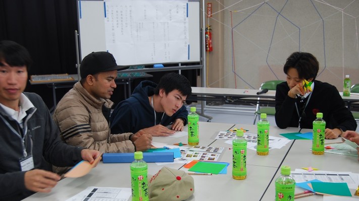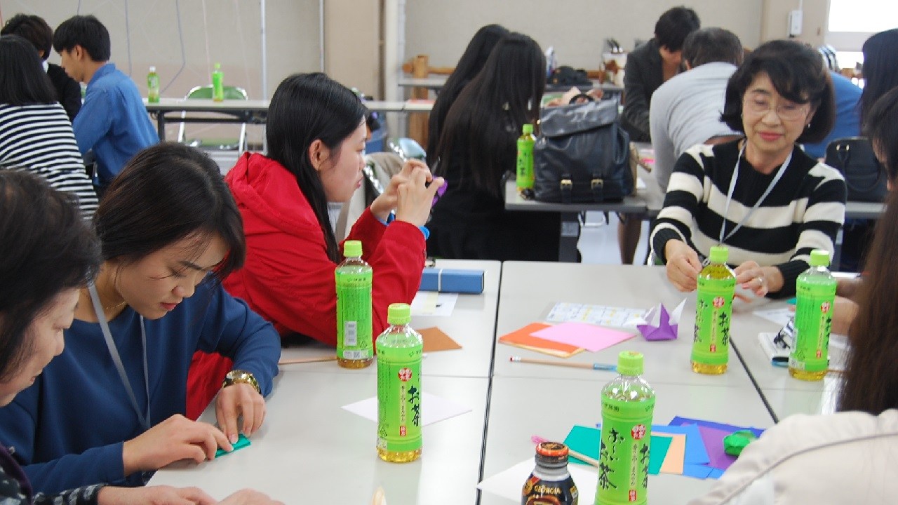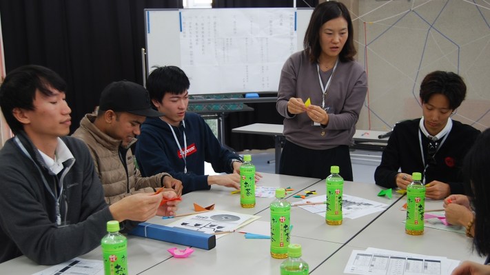 その後は日本の文化を体験する時間として『折り紙』を国際交流センターのスタッフの方よりご指導いただき、留学生同士の交流を深め、楽しい時間をすごしました。
